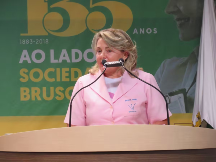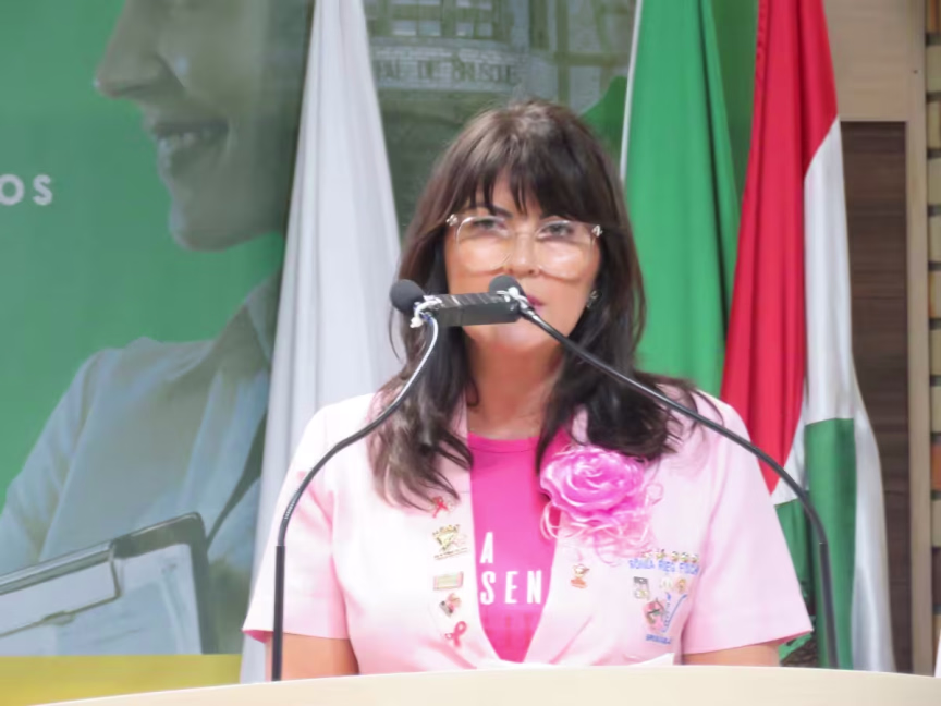 A presidente estadual da Rede Feminina de Combate ao Câncer, Sônia Rieg Fischer, participou da sessão da Câmara de Vereadores de Brusque nesta terça-feira, 16, ao lado de voluntárias e pacientes da entidade.