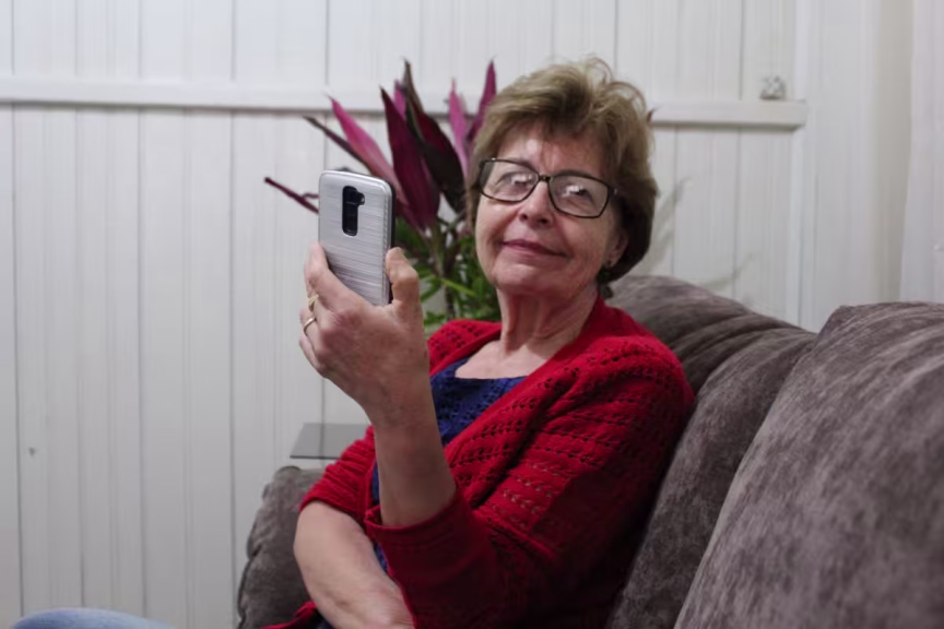 De tempo em tempo, o esposo de Matilde troca o celular dela e com isso ela precisava aprender a mexer no novo aparelho. “Eu custei para pegar e quando peguei (o jeito de mexer) ele ia lá e trocava. Depois eu tinha que começar a aprender de novo”. Agora ela brinca e diz que não quer ganhar um novo celular. “É muita coisa para a minha cabeça”.