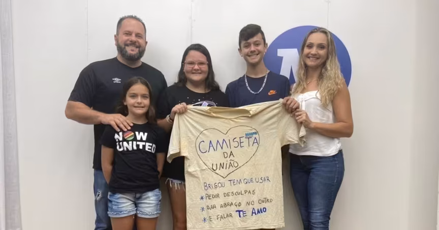 As intrigas e brigas entre os irmãos são muito comuns, mas o excesso fez com que uma família de Brusque pensasse em alternativas para resolver a situação. Foi assim que surgiu a camiseta da união, cujo objetivo era acalmar os ânimos e mostrar a importância do convívio em harmonia para Guilherme e Letícia.