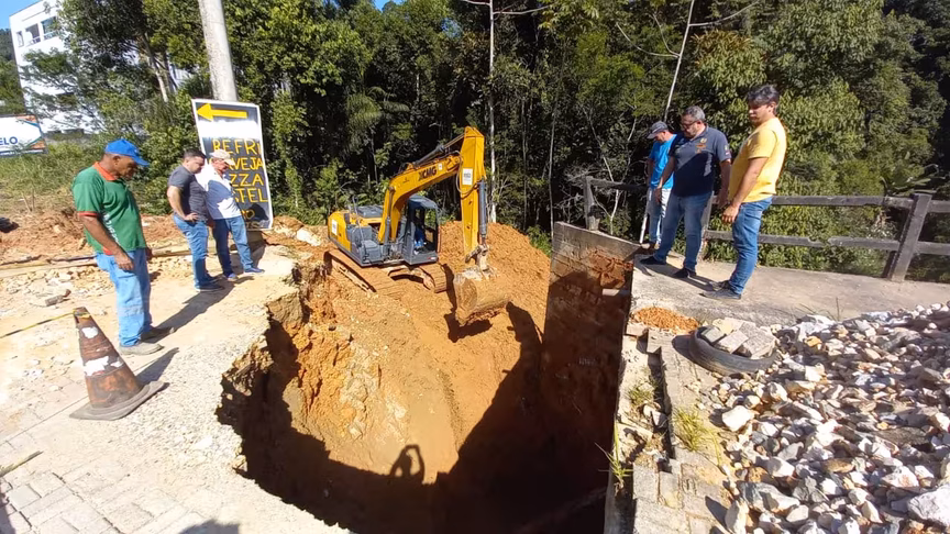 O secretário de Obras, Ricardo José de Souza, explica o serviço realizado no local. “Cavamos um dos lados das cabeceiras, colocamos rachão, concreto, e terra, para fazer uma melhor sustentação das estruturas evitando que a força da água leve o material colocado, com isso não teremos danificações na ponte de forma recorrente. Esse mesmo material já foi colocado na outra cabeceira, do outro lado”, comenta.