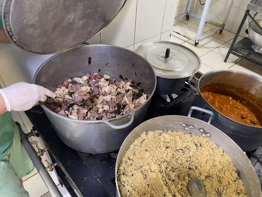 Os internos fazem a comida, são servidos cerca de 144 almoços e 144 jantares. São servidos cinco refeições diárias: café da manhã, lanches, almoço, janta e ceia.