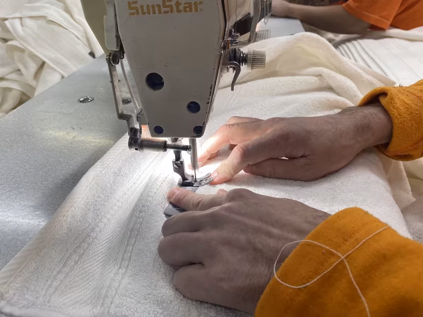 No contêiner da Atlântica, todos os dias de manhã a empresa descarrega cerca de 12 mil toalhas. Os presos fazem processo de revisão e as separam por qualidade e pela necessidade de conserto.