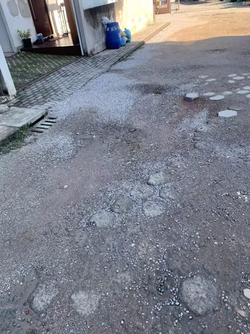 Ainda, morador diz que a vizinhança já tentou entrar em contato com a Secretaria de Obras, que apenas deixou a solução como uma promessa. Além disso, na última semana, trabalhadores da prefeitura estiveram na rua e cavaram um buraco. Entretanto, tamparam com areia e as lajotas ainda estão na calçada. "Situação está bem precária", diz.