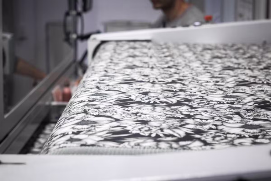 Diferente da estamparia rotativa convencional, o processo digital é prático, econômico e sustentável, pois utiliza menos água e menos corante, além de possibilitar maior variedade de cores e melhor definição de imagem das estampas.
