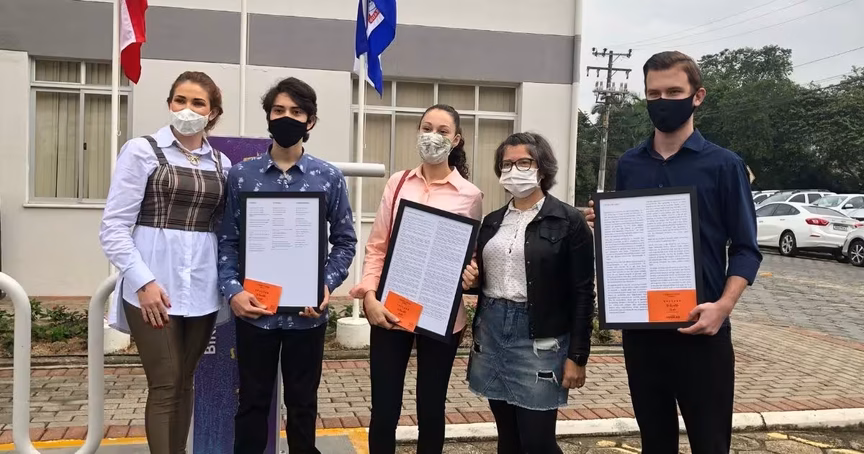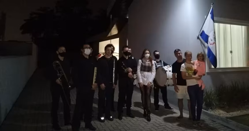 Evento foi reduzido por causa da pandemia, mas foi realizado em frente à prefeitura com presença de autoridades locais