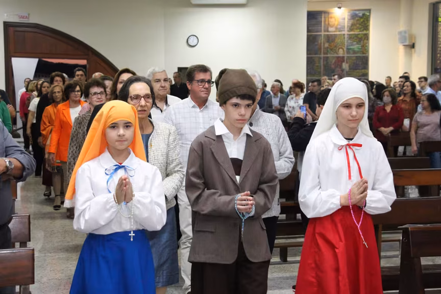 Ao final, crianças da comunidade interpretaram os “Pastorinhos de Fátima”, bem como a coroa de Nossa Senhora.