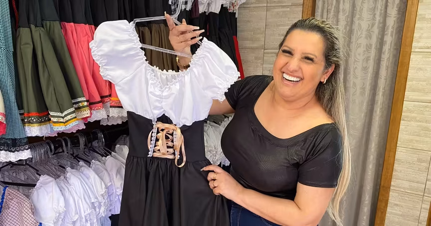 Outro estabelecimento onde há grande procura é na Tere Trajes Típicos, no bairro Santa Terezinha. O tradicional empreendimento está há mais de 30 anos no mercado.