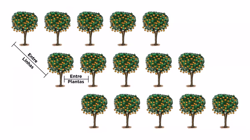 – Laranjas (pera, champanhe, etc): 6m x 3m;