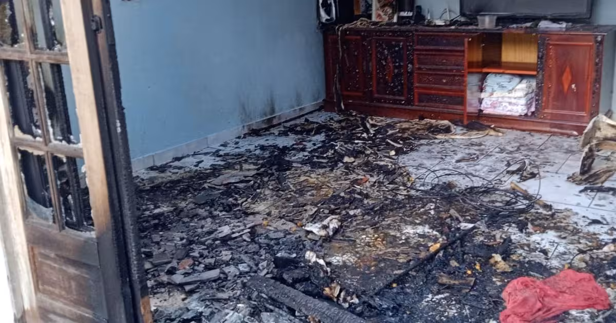 O fogo se concentrou na sala da casa. A família estava na residência quando as chamas iniciaram. Um bebê e outras duas crianças dormiam quando o incêndio começou.