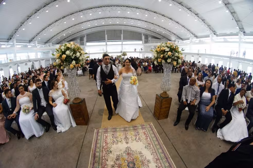 Os trajes podem ser providenciados pelos noivos de acordo com suas preferências e, em caso de doação por padrinhos, poderão ser ofertados gratuitamente. Os casais deverão apresentar quatro testemunhas para habilitação legal em cartório.