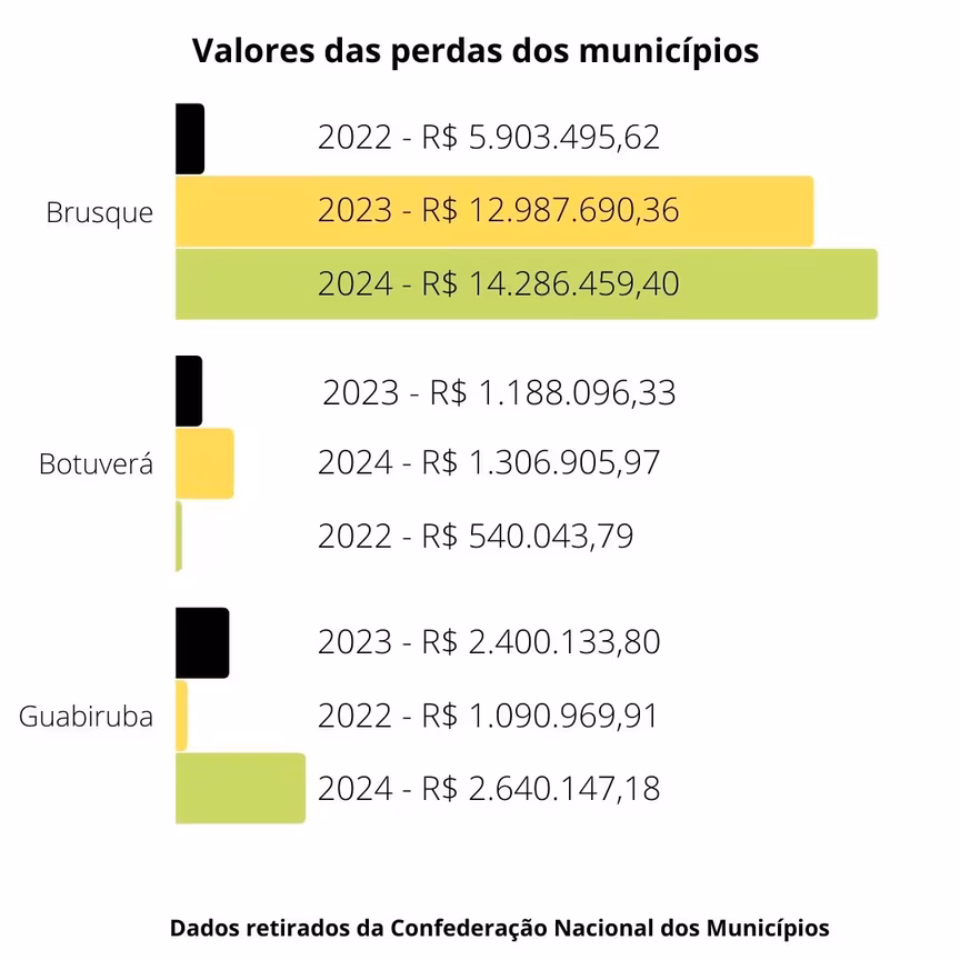 Guabiruba e Botuverá também podem ter perdas milionárias na arrecadação