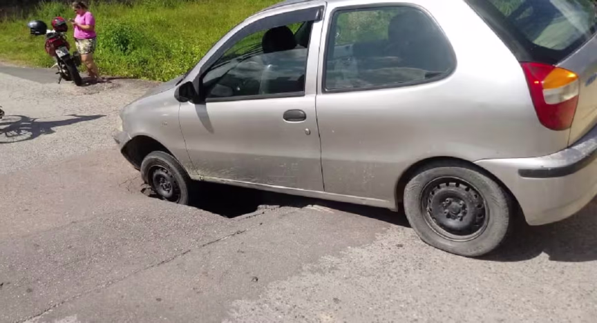 De acordo com a Guarda de Trânsito de Brusque (GTB) o local, próximo a cabeceira de uma ponte, chegou a ser interditado após o asfalto ceder e um veículo Pálio cair na cratera na tarde do domingo.