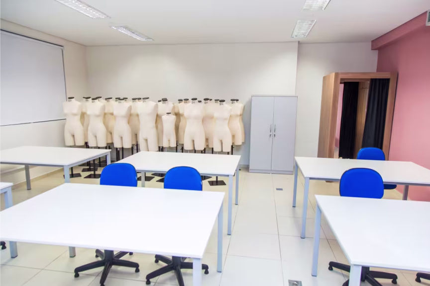 Os estudantes aprendem desde a história da arte e da indumentária, passando pela inclusão no mercado, os processos desde o chão de fábrica, da base da moda, que é a costura e a modelagem, até capacitação para empreender no setor.