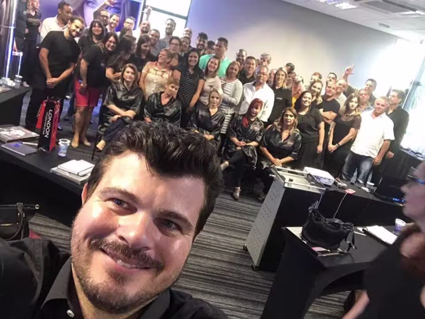 Ah sim, é uma coisa que eu adoro! Dividir um pouco do conhecimento que eu tenho com meus amigos cabeleireiros, onde reinventamos todos os dias a melhor das profissões, não tem preço. Já visitei vários estados brasileiros ministrando cursos de colorimetria, mechas e corte. Também tive o prazer de poder levar nossa técnica de mechas para Londres, onde ministrei o curso para um grupo de profissionais brasileiros lá, foi incrível. Eu tenho também um curso de mechas online, onde consigo levar a minha técnica a diversos lugares. Tenho alunos em todos os cantos desse planeta: Egito, Japão, Inglaterra, França, Alemanha, Estados Unidos, etc. Recebo muitos feedbacks que estou conseguindo mudar a vida profissional de muitos cabeleireiros mundo afora, e tenho certeza que meu avô e minha mãe, onde quer que eles estejam, devem sentir muito orgulho de mim.