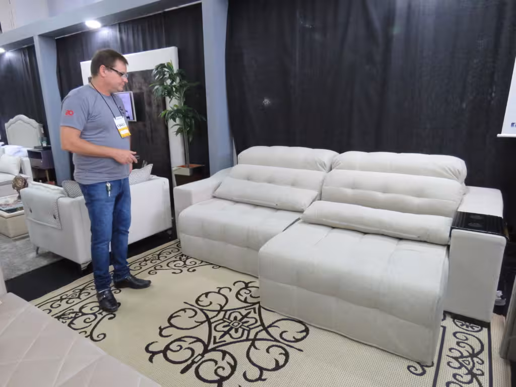 Durante o evento, Klann realizou diversos orçamentos, os quais deverá fechar negócio no decorrer dos próximos dias pós-feira. O valor do sofá exposto no evento, com 2,8 metros de comprimento girava em torno de R$ 8 mil. “Além do diferencial da automatização, ele é fabricado com um estofado diferente, mais resistente e é vem inteiro apoiado no chão desde lá de trás”, explica.