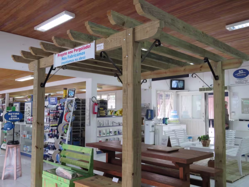 Há ainda os pergolados e decks, que hoje são tendência no segmento de decoração e fabricados de acordo com o desejo de cada cliente, seguindo tamanho e modelo que se encaixam perfeitamente ao ambiente disponível, proporcionando mais requinte e sofisticação aos jardins e áreas de festas. Também é possível fazer o corte de chapas de compensado no tamanho que o cliente necessita. “O corte é feito na própria loja, facilitando a vida dos clientes”.