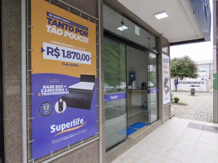 A Superlife Colchões fica na rua Hercílio Luz, 79, no Centro da cidade. A empresa foi criada em novembro de 2018, em Tijucas, com vendas somente pela internet. O proprietário, Francisco da Silva, atua no ramo há cinco anos e possui experiência tanto em fábrica quanto em vendas. A primeira venda da Superlife foi no dia 24 de dezembro de 2018. Silva e a esposa colocaram o colchão em cima de um veículo HB20 e entregaram no mesmo dia para o cliente. Em janeiro de 2019 após participar de uma exposição em Governador Celso Ramos as vendas deslancharam e em março do mesmo ano surgiu a primeira loja física em Tijucas. Nos primeiros meses, Silva revendia colchões, até que em novembro do ano passado abriu uma fábrica e começou a produzir os próprios colchões. Desde então, a empresa vem crescendo e além da nova loja em Brusque uma outra será inaugurada em Tijucas. Silva tem boas expectativas com a inauguração no município. Todos os produtos da Superlife são 100% fabricação própria. “A marca não tem reclamações em nenhuma plataforma e tem as melhores avaliações do país nas redes sociais. Também possui o melhor preço de loja física”, enfatiza o proprietário.