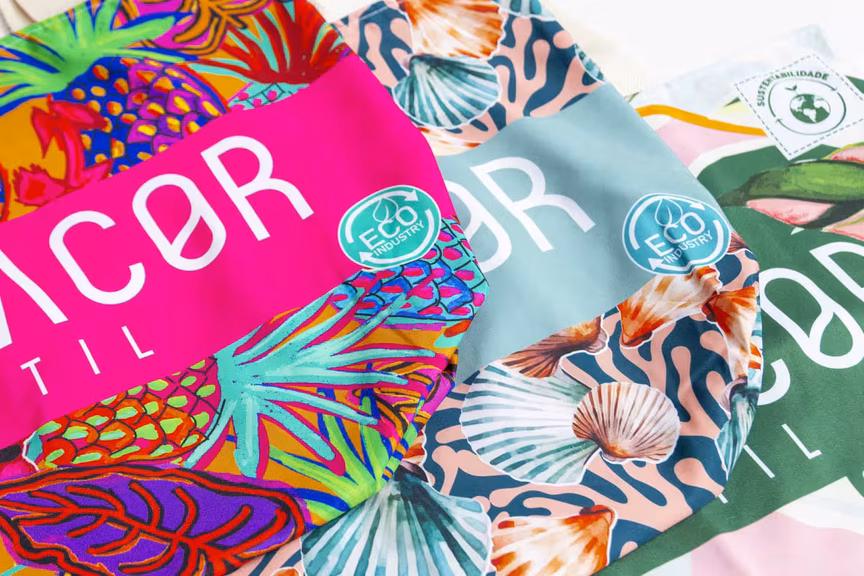 Todo o maquinário e as tintas são certificados pelo selo OEKO-TEX, preservando o toque original do tecido com qualidade e responsabilidade.