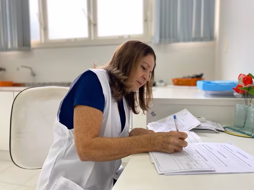 A trajetória da enfermeira Paula Tormena no Sintrafite começou há mais de quatro décadas. Em 1980, ela foi convidada para trabalhar na farmácia do sindicato, onde ficou poucos meses antes de ser transferida para o ambulatório, onde trabalha até hoje.