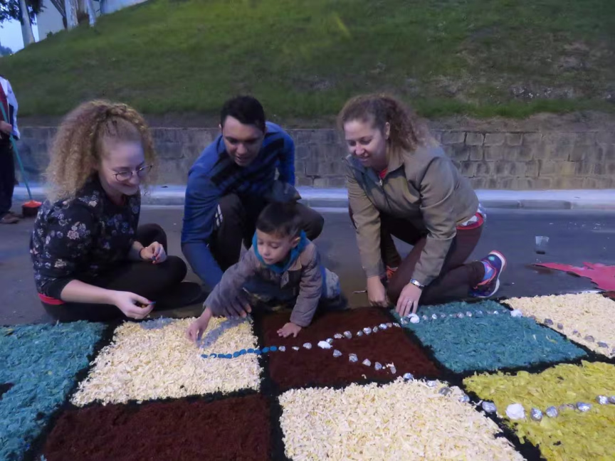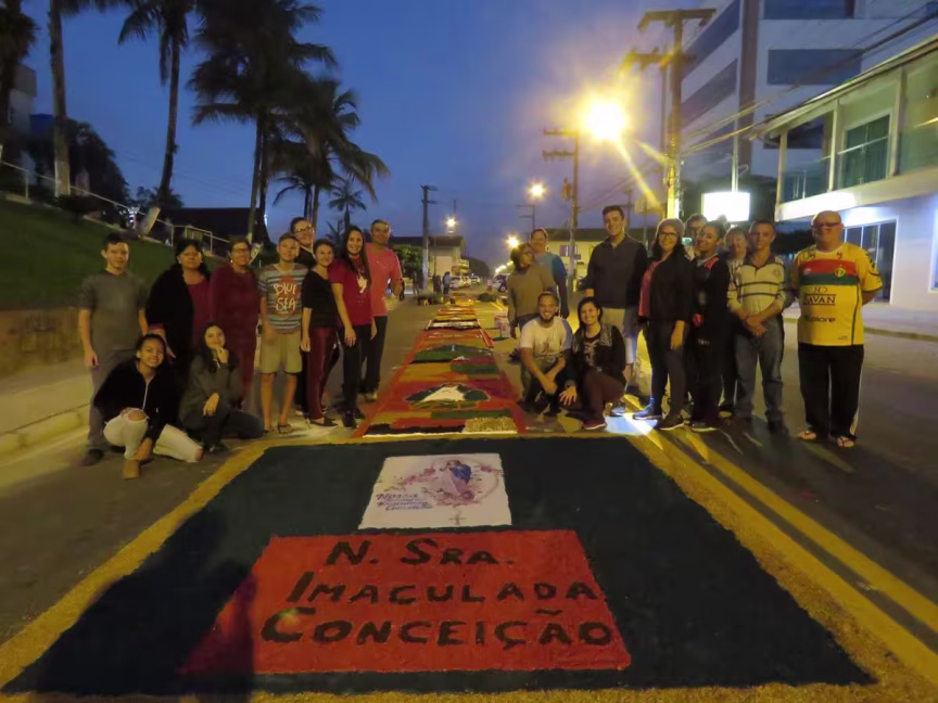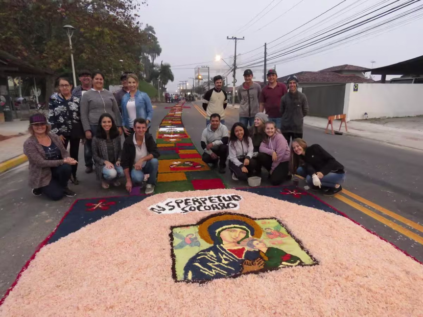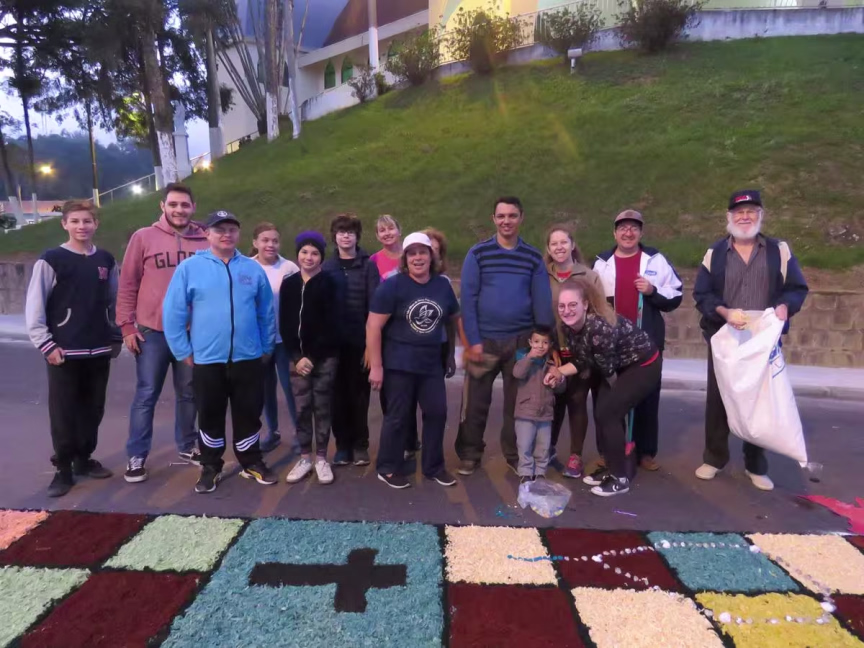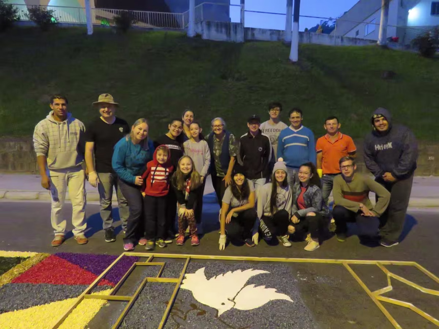 Além de Arthur, a filha adolescente Maueva e o marido Alex Sandro também estiveram juntos para ajudar na confecção do tapete. Todos movidos pela fé católica.