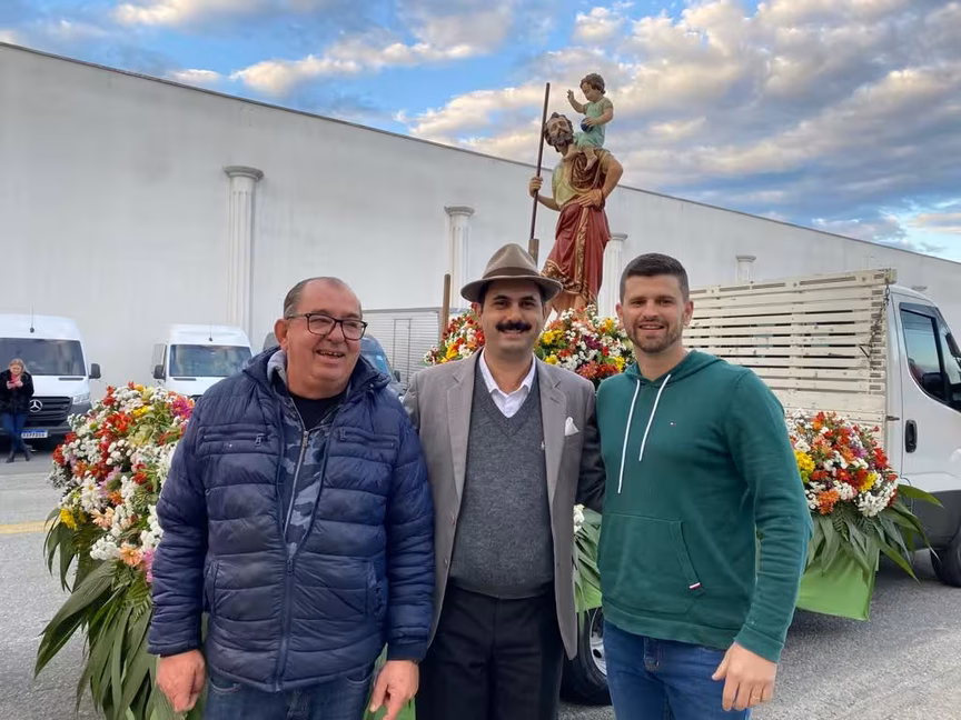À frente da procissão foi a imagem de São Cristóvão, padroeiro dos motoristas e viajantes. Willian Pianizzer foi um dos responsáveis por segurar a figura do santo. O seu pai era caminhoneiro e, por isto, desde criança ele participa do evento.