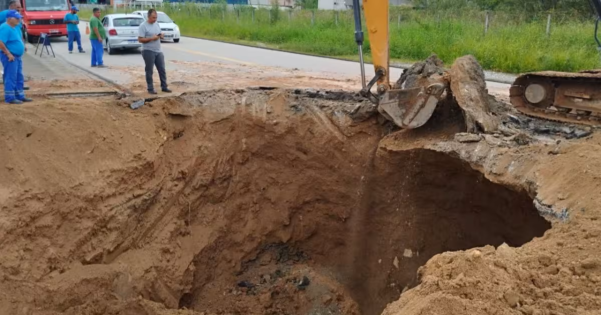Para explicar a gravidade desse tipo de situação, o secretário da pasta, Ivan Bruns Filho, deu mais detalhes do ocorrido. “Nós temos hoje em Brusque, por conta da idade das tubulações e pela vida útil dos tubos, muitos rompimentos de tubulação ocorrendo em todos os bairros, em toda a cidade. Então é aquilo que a gente sempre fala, o conserto de tubulação, a tubulação em si, é uma caixinha de surpresa. Um buraquinho de em torno de 10, 15, às vezes oito centímetros de diâmetro, quando você abre tem uma surpresa”, disse Ivan.