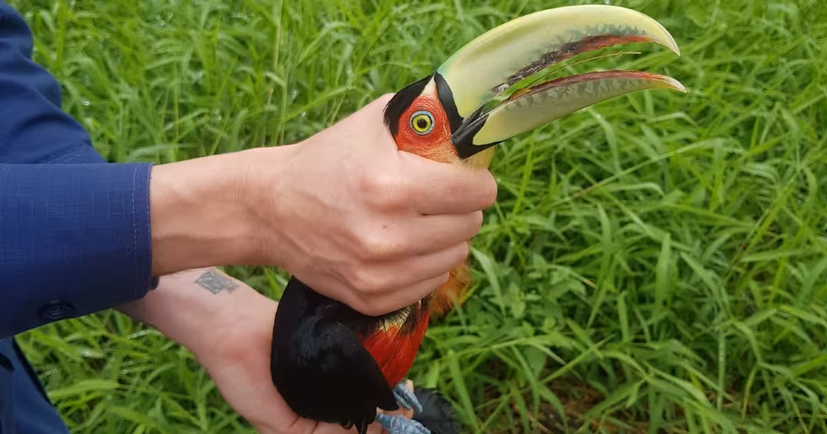 Tucano que bateu em vidro de agência em Guabiruba é resgatado e solto na natureza
