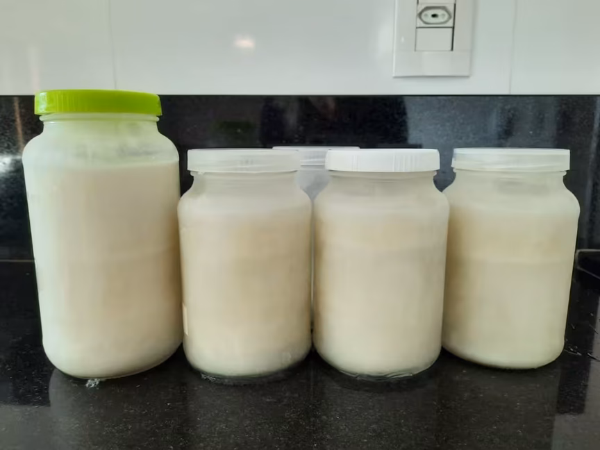 Ela detalha que cada vidro contém cerca de 450 mililitros (mL). “Tiro de 150 a 350 ml cada vez. Às vezes, eu encho um vidro inteiro em um dia. A extração do leite é um benefício tanto para o bebê quanto para mim”, reforça.