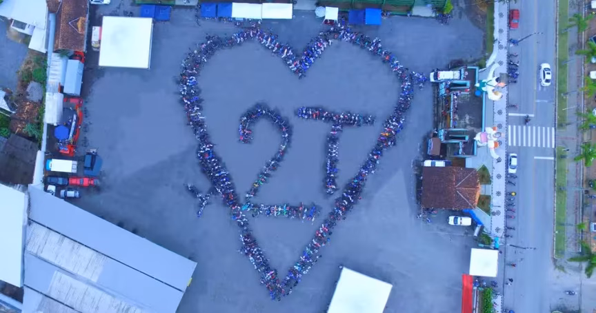 Todos se reúnem e formam um coração, além da escrita “2T”. A saída para o passeio acontece por volta das 11h de domingo e deve durar cerca de 20 minutos.