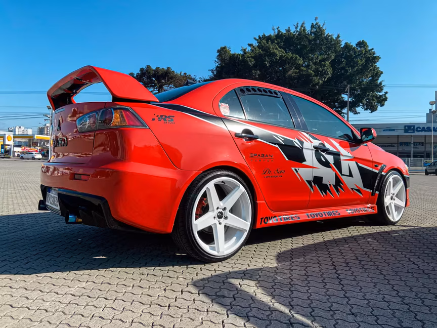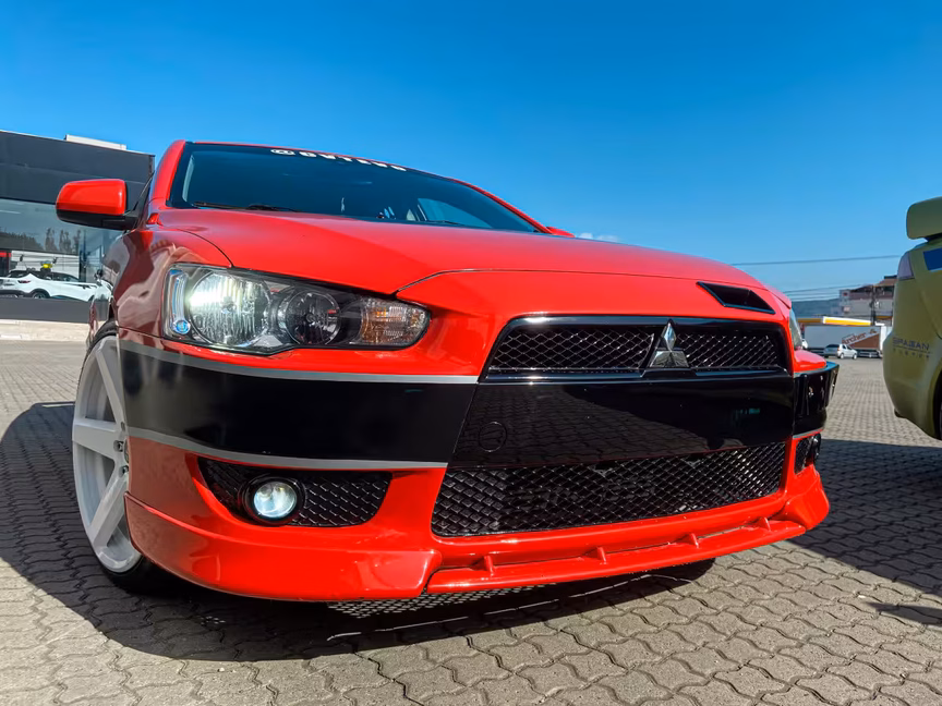 Já Carlos Eduardo Bosio, de 26 anos, morador do bairro São Pedro, é proprietário do Lancer CVT vermelho. O veículo de cor vermelha buscou ter a estética de outro Mitsubishi Lancer, mas dessa vez se trata do modelo Evo IX GSR, de 2006.