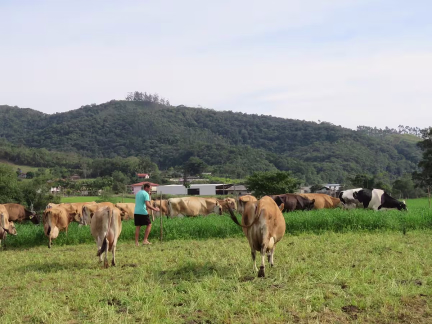Vida no campo: conheça a rotina de família que cria gado de leite e produz queijinho e nata, em Guabiruba