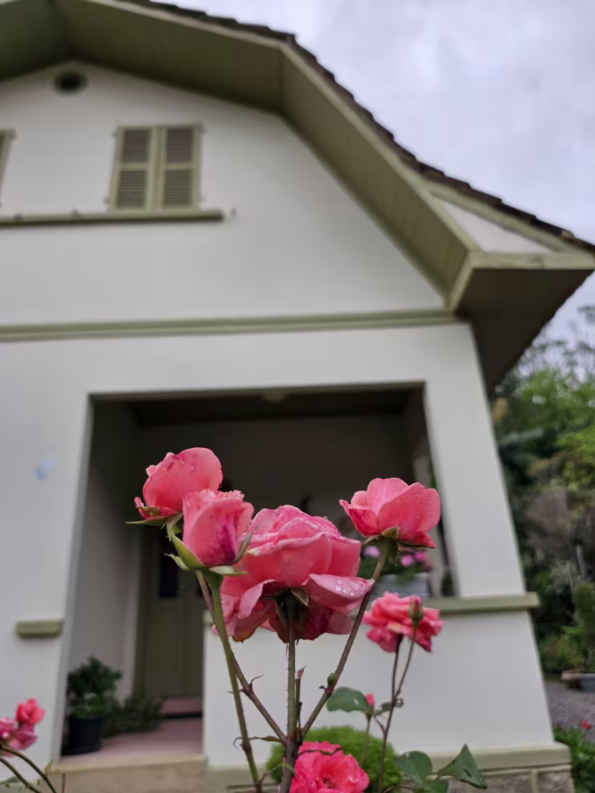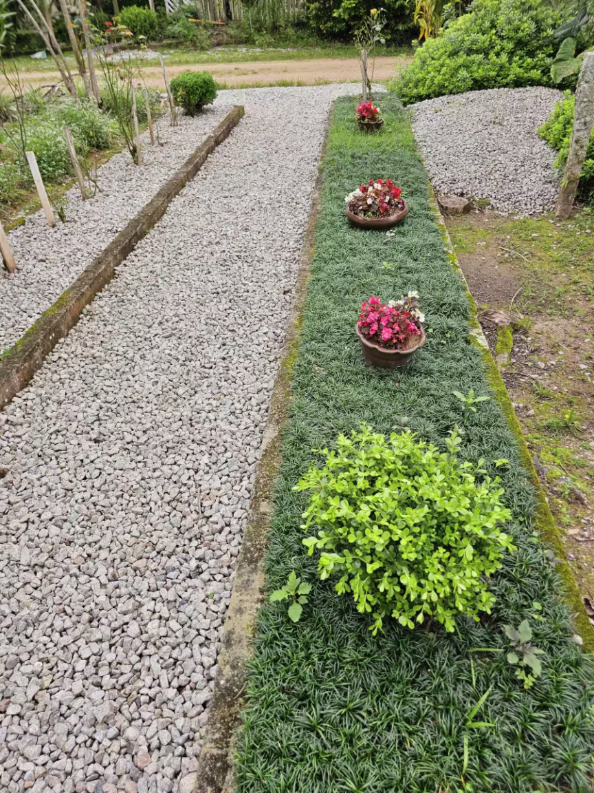 Ana e Ilona empenham-se com esmero em cuidar de seus respectivos jardins, resultando neste encanto admirável que captura a atenção de quem passa em frente.