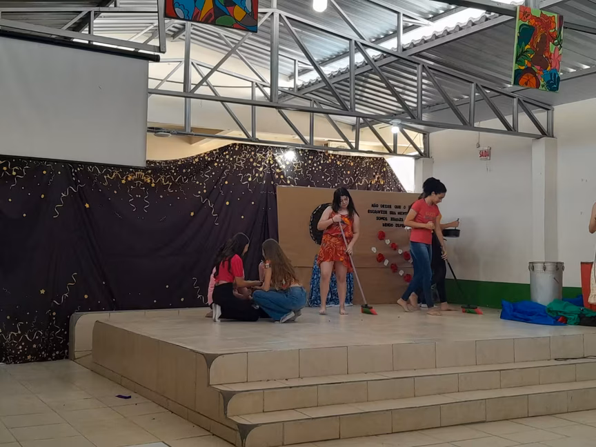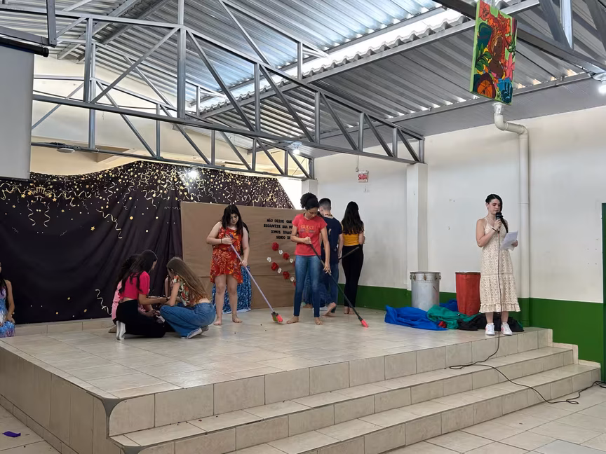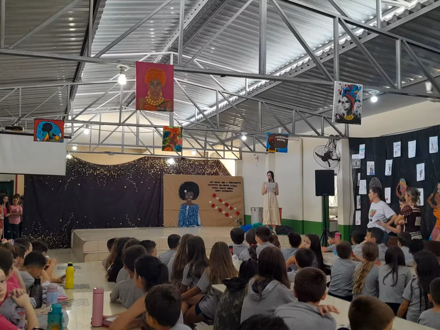 No palco da escola, os alunos apresentaram peças de teatro, poesias, paródias e também uma dança africana. Os corredores do local estavam enfeitados com o tema.