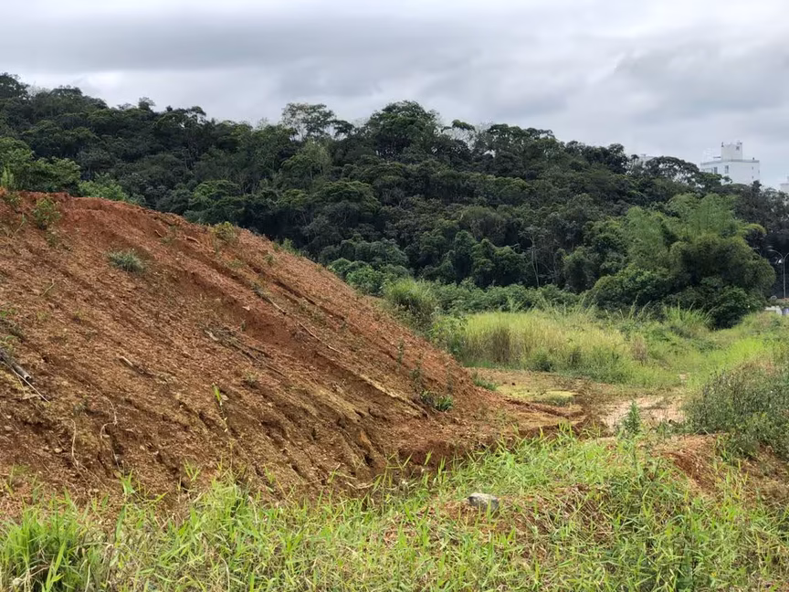 O terreno onde será construído o novo shopping de Brusque chama atenção de quem passa pela rua Martin Luther, no Centro. A sensação de que o local está abandonado é evidente. O mato e o capim começam a crescer na terra que foi mexida para o início da construção. Pequenas árvores também surgem entre os níveis da terraplenagem. O portão que protegia a entrada foi destruído junto com a corrente.
