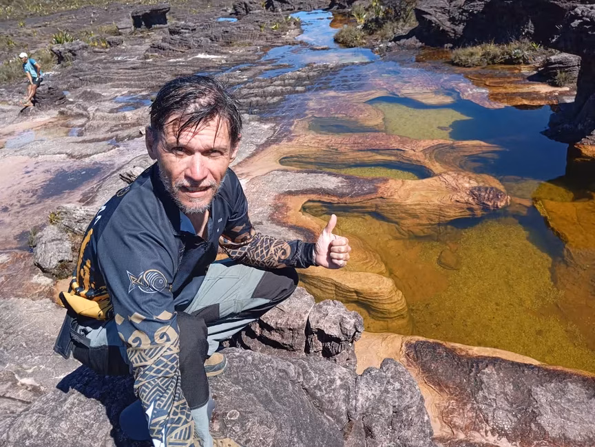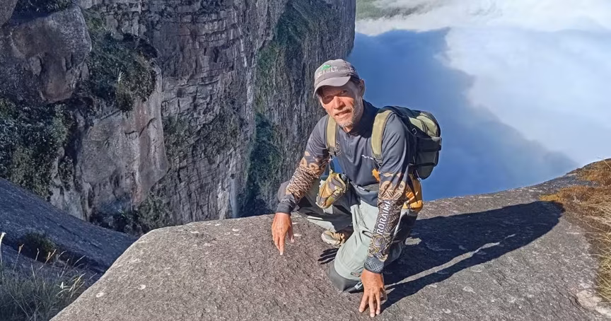 Conforme consumia os alimentos em sua mochila, o peso diminuía, porém, as dores nos pés e o cansaço ainda afetavam o brusquense. “Coloquei as mãos para o céu e agradeci a Deus por ter chegado até ali, encostando as mãos no paredão do Monte Roraima”, conta.