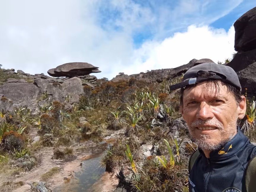“Saindo de Pacaraima (em Roraima), de moto, são 90 quilômetros de asfalto, mais 23 km de estrada de chão, muito ruim, por sinal, até Paraitepuy. Só passavam veículos com tração, era o único turista de moto no início da escalada até o topo”.