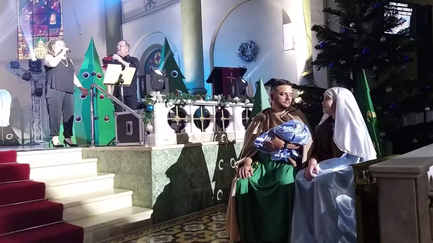 Arlete, que reside há quase 40 anos no bairro Azambuja, relata que veio em todas as apresentações. "Isso é Natal, a igreja, não é só presente, mas a presença e o menino Jesus. O nascimento de Jesus é tudo de bom", ressalta.