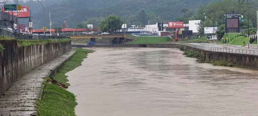A Defesa Civil de Brusque informou que o nível do rio Itajaí-Mirim é de 5,19 metros.