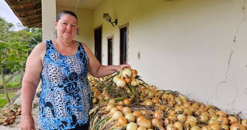VÍDEO – Descubra como moradora surpreendeu Guabiruba com seus três mil pés de cebola