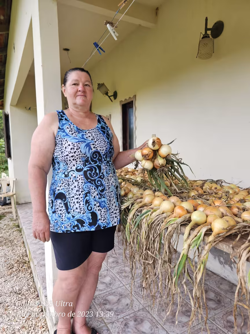 Jupira expressa seu apreço pelo que faz: "Gosto muito de tudo o que faço. Estes três mil pés de cebola foram um prêmio para mim. Jamais imaginei colher cebolas tão viçosas como este ano", destaca ela.