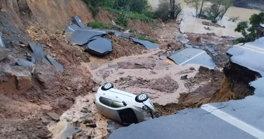 VÍDEO – Enorme cratera se abre na BR-470 e carro cai em buraco em Rio do Sul