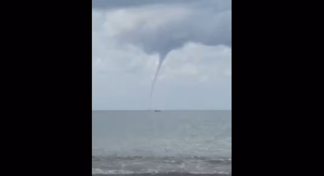 VÍDEO – Fenômeno climático conhecido como “tromba d’água” é visto em praia no Litoral Norte