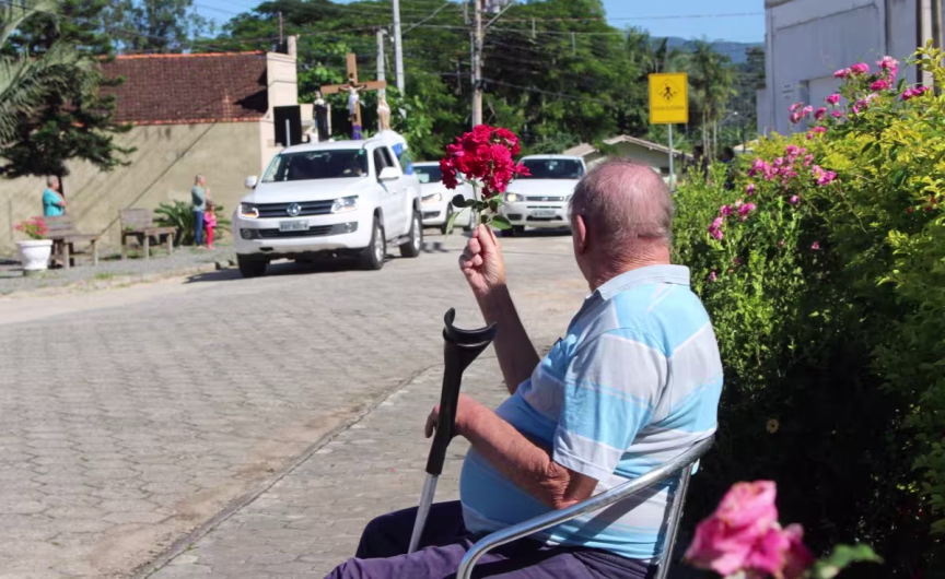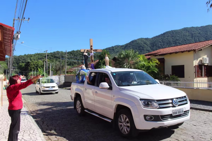 Nesta quarta-feira, 8, as imagens de Jesus Crucificado, Santa Paulina e Nossa Senhora do Bom Socorro, percorreram as ruas de Nova Trento para abençoar o município e rezar pelo fim da pandemia do coronavírus.