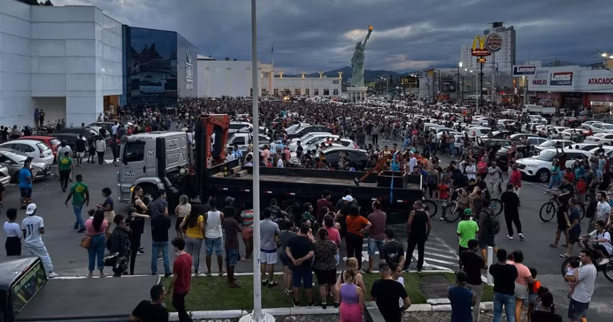VÍDEO – Influenciadora joga dinheiro em estacionamento, irrita multidão e é xingada, em Brusque