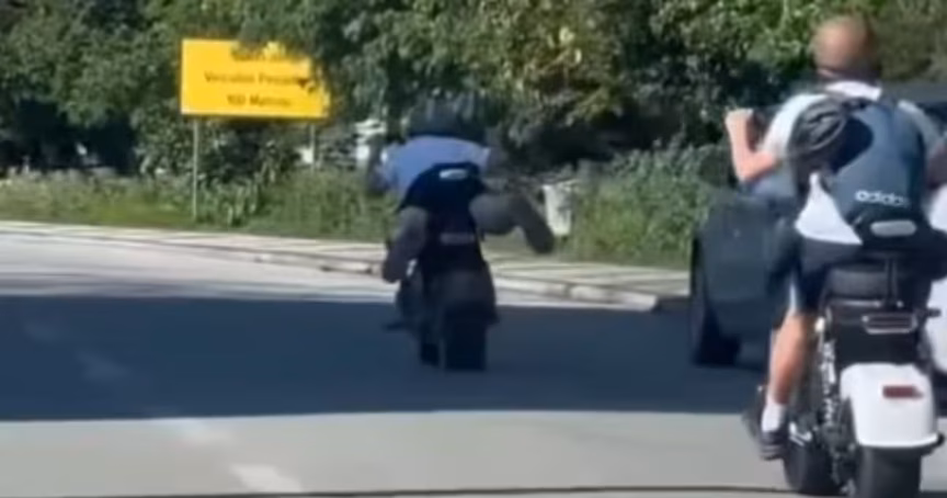 Um jovem foi flagrado realizando a manobra “superman” enquanto conduzia uma scooter elétrica na avenida Arno Carlos Gracher, margem esquerda da Beira Rio, no Centro de Brusque. O fato foi registrado na terça-feira, 14.