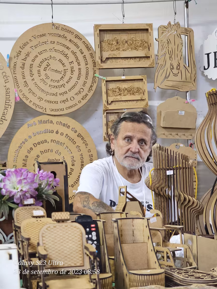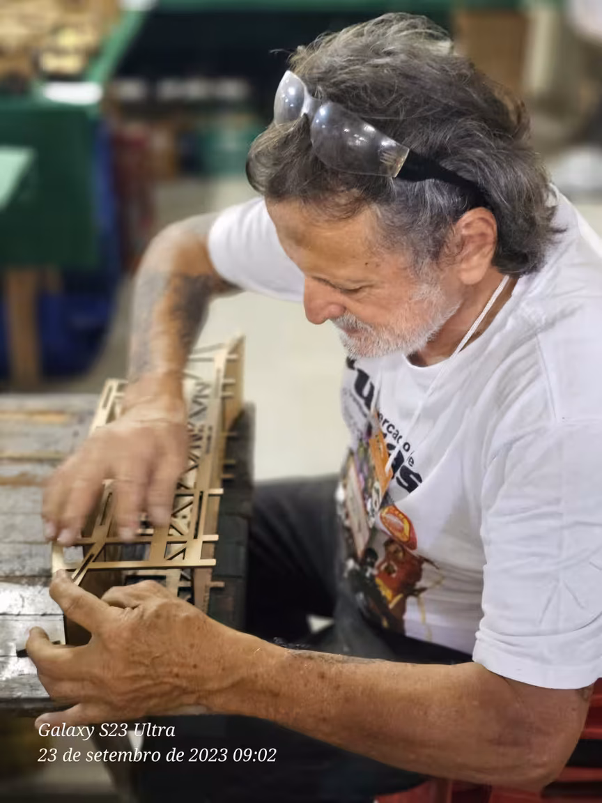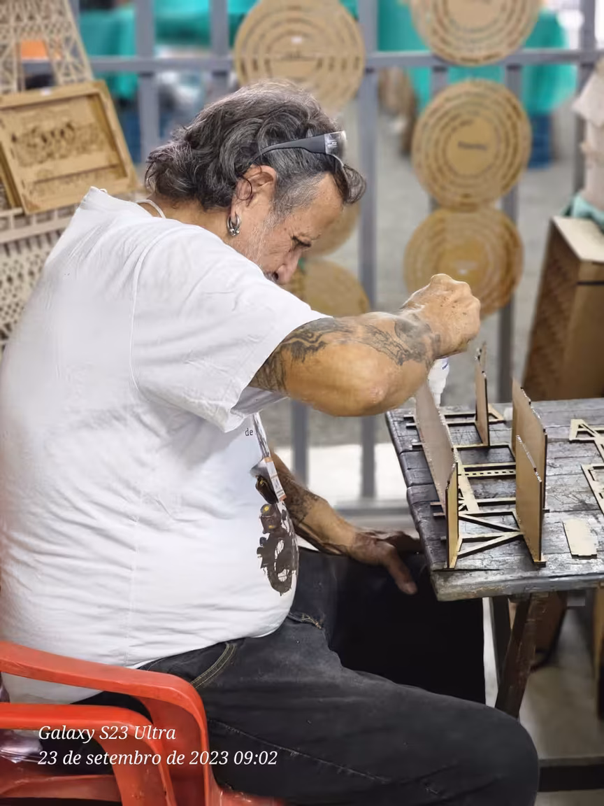 Hoje, ele ergue sua arte em um espaço sagrado no bairro Santa Rita, onde, com paciência e paixão incansáveis, molda a madeira com amor e cuidado, transformando-a em uma expressão vívida de sua alma criativa.