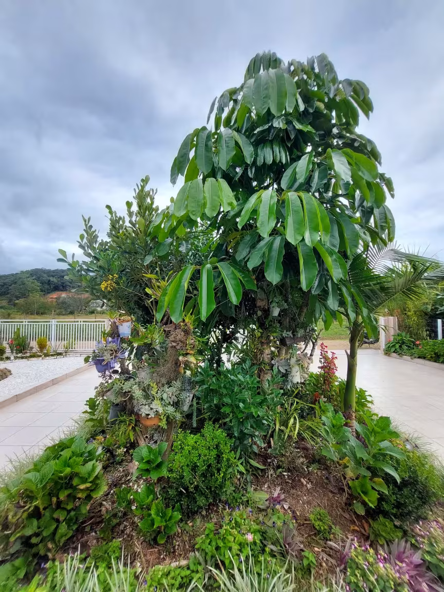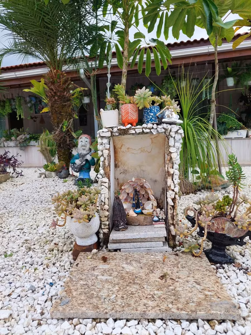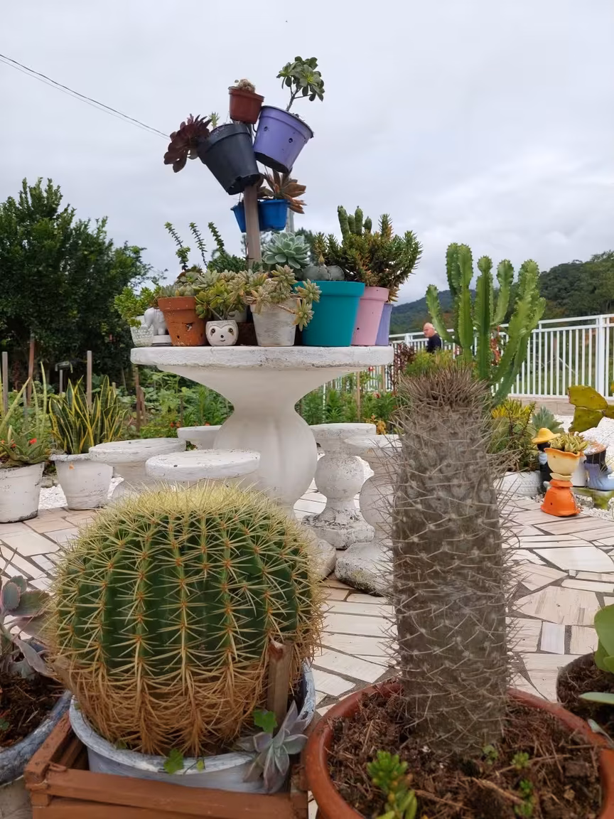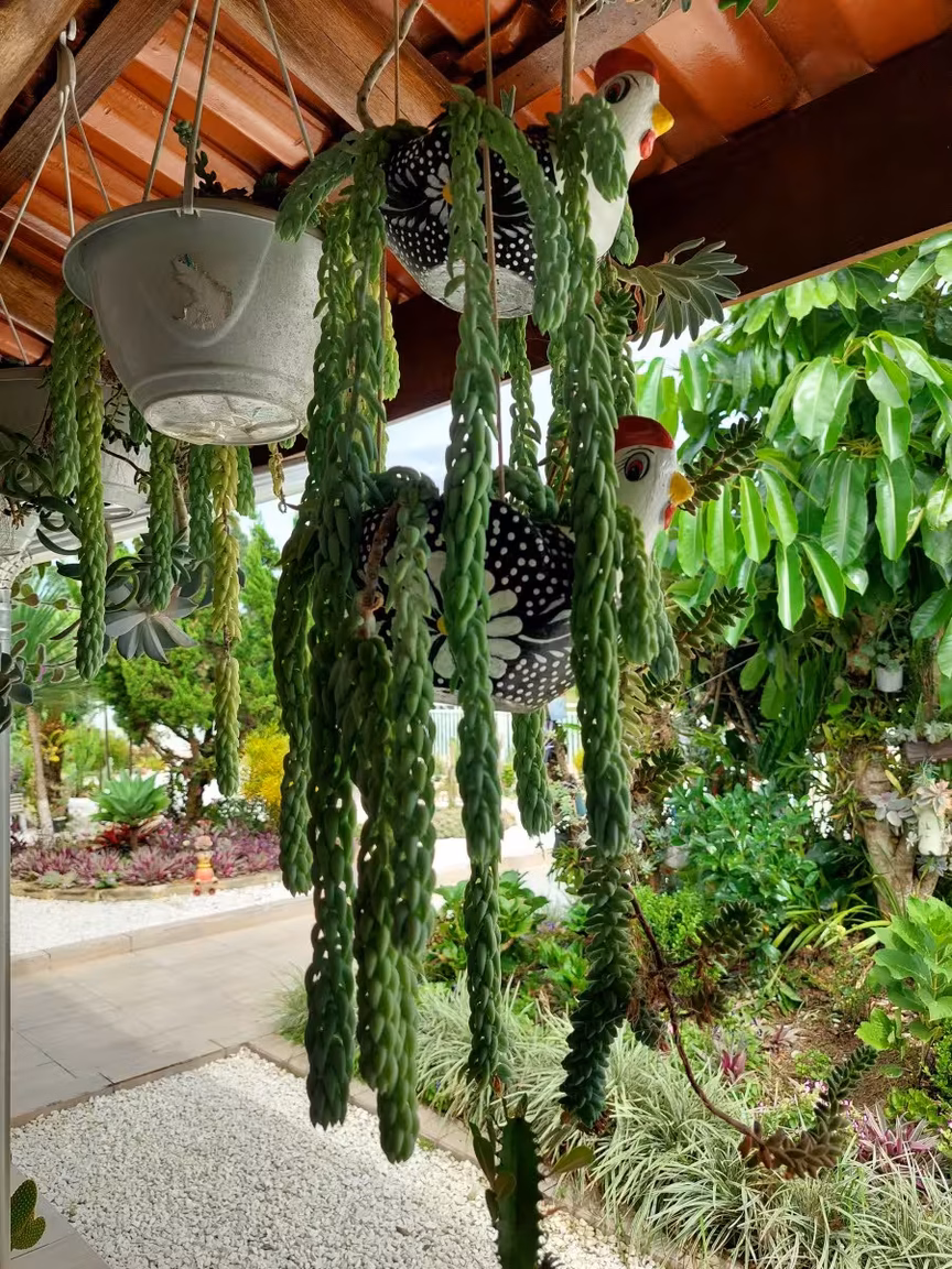 Em sua residência, nos deparamos com um autêntico paraíso, onde flores, plantas, cactos, suculentas e orquídeas coexistem em harmonia.