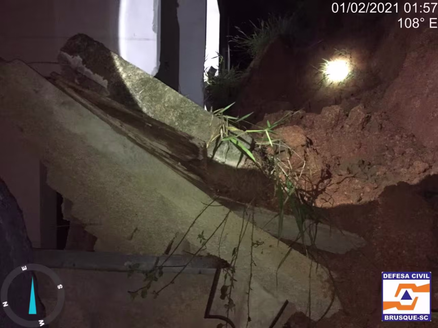 Na madrugada desta segunda-feira, 1º, por volta das 1h30, os agentes da Defesa Civil de Brusque atenderam uma ocorrência de deslizamento e queda de muro, na rua José Reis, bairro Zantão. No local, a equipe verificou que seis residências geminadas foram atingidas pelo deslizamento, bem como pelos escombros da estrutura. Ninguém se feriu.