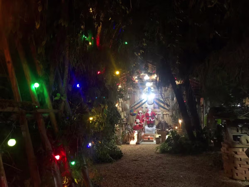 Ele, a esposa e a filha mantêm viva a tradição de Natal no terreno da família