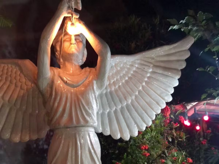 “Para fazer o presépio, se baseia em uma casa de interior e um rancho grande. É preciso de animais, de alimento para eles. Tem a lamparina, que era usada antigamente para iluminar, o poço, que abastecia água para todos eles. Tem também o lago, que representa o ribeirão para os animais”.